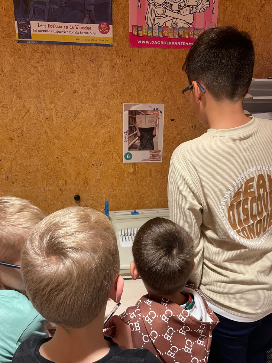 Op school zijn de juffen en meesters ook in de boeken gedoken! Via een speurtocht door de school kregen de kinderen de opdracht om te ontrafelen wie er achter het boek verstopt zat.